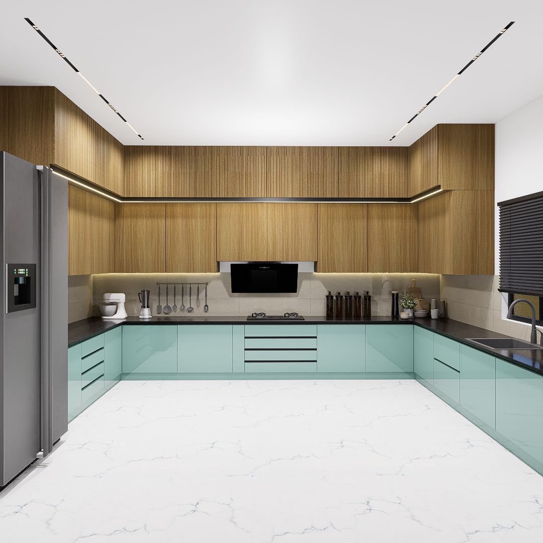 Teak-Ply & Veneer provide a natural, classic, and rich look that can be polished or laminated to match different styles. They offer versatility in design and give your kitchen a warm and elegant appeal.