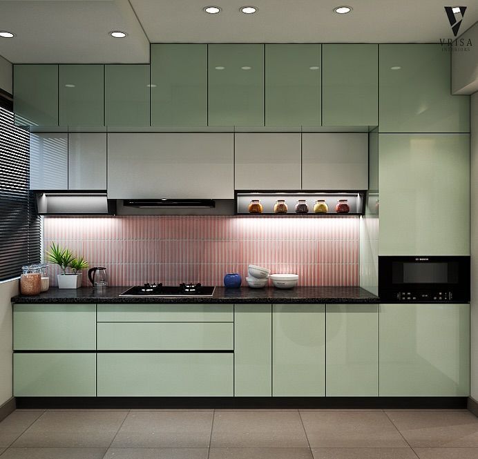 Laminates are one of the most popular choices for Modular Kitchens, offering a wide variety of colors, textures, and designs. High-Pressure Laminates (HPL) are durable and long-lasting, while Low-Pressure Laminates (LPL) are cost-effective and suitable for budget-friendly projects.